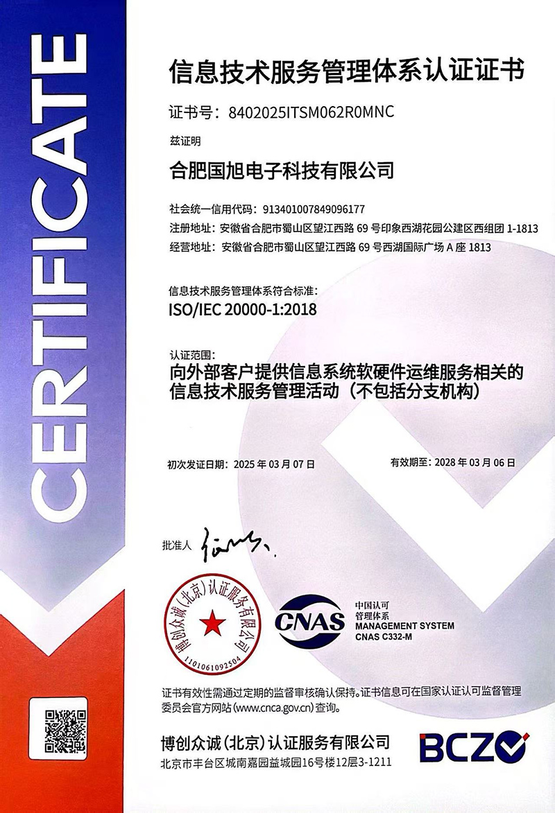 合肥國旭電子科技有限公司創(chuàng)立于2006年,總注冊(cè)資本2008萬。公司總部地址位于安徽IT主流商圈核心,合肥市蜀山區(qū)望江西路與肥西路交口西湖國際廣場。 公司是專業(yè)從事智能防雷檢測系統(tǒng)、智能化工程設(shè)計(jì)與施工工程、防雷設(shè)計(jì)施工工程、數(shù)據(jù)中心機(jī)房、消防工程、網(wǎng)絡(luò)監(jiān)控安全技術(shù)防范工程、及智能變電站安全預(yù)警系統(tǒng)。